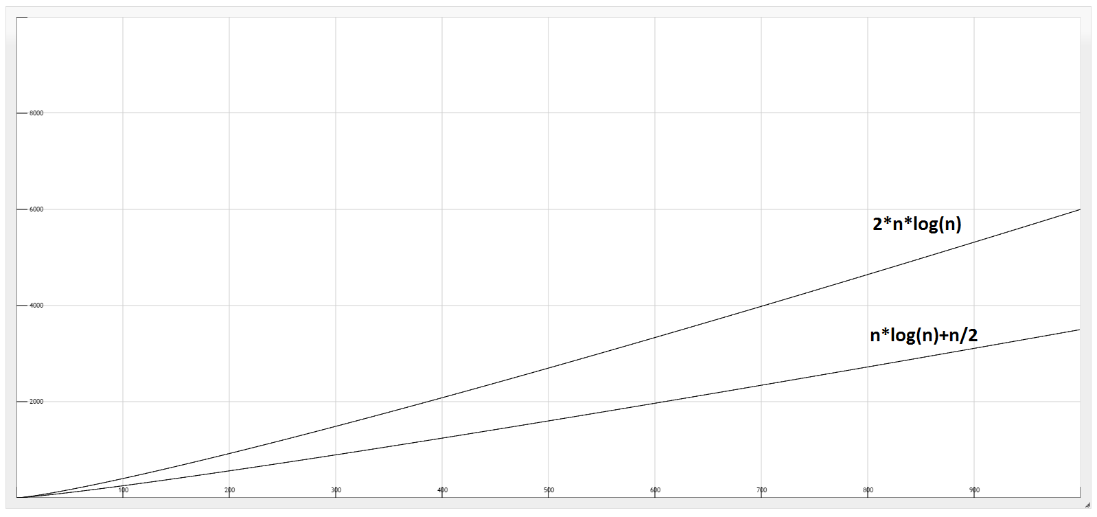 So this program has a complexity of nlog(n), it takes exactly nlog(n) + n/2 steps.