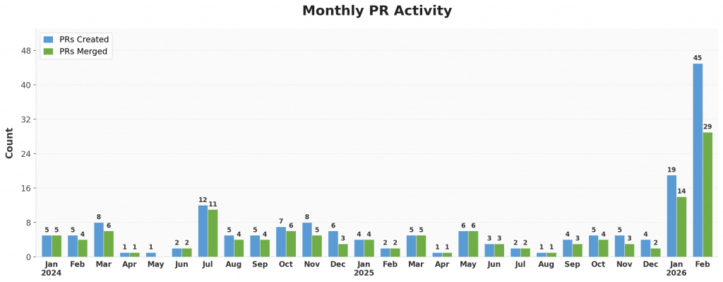 Last month I wrote my experience with AI-generated coding on this blog. I got a lot of positive feedback, so I created another chart for my work up till this month and wrote down the thoughts I had.