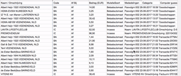 interesting_features = ["Naam / Omschrijving", "Tegenrekening", "Af Bij", "Mededelingen"]