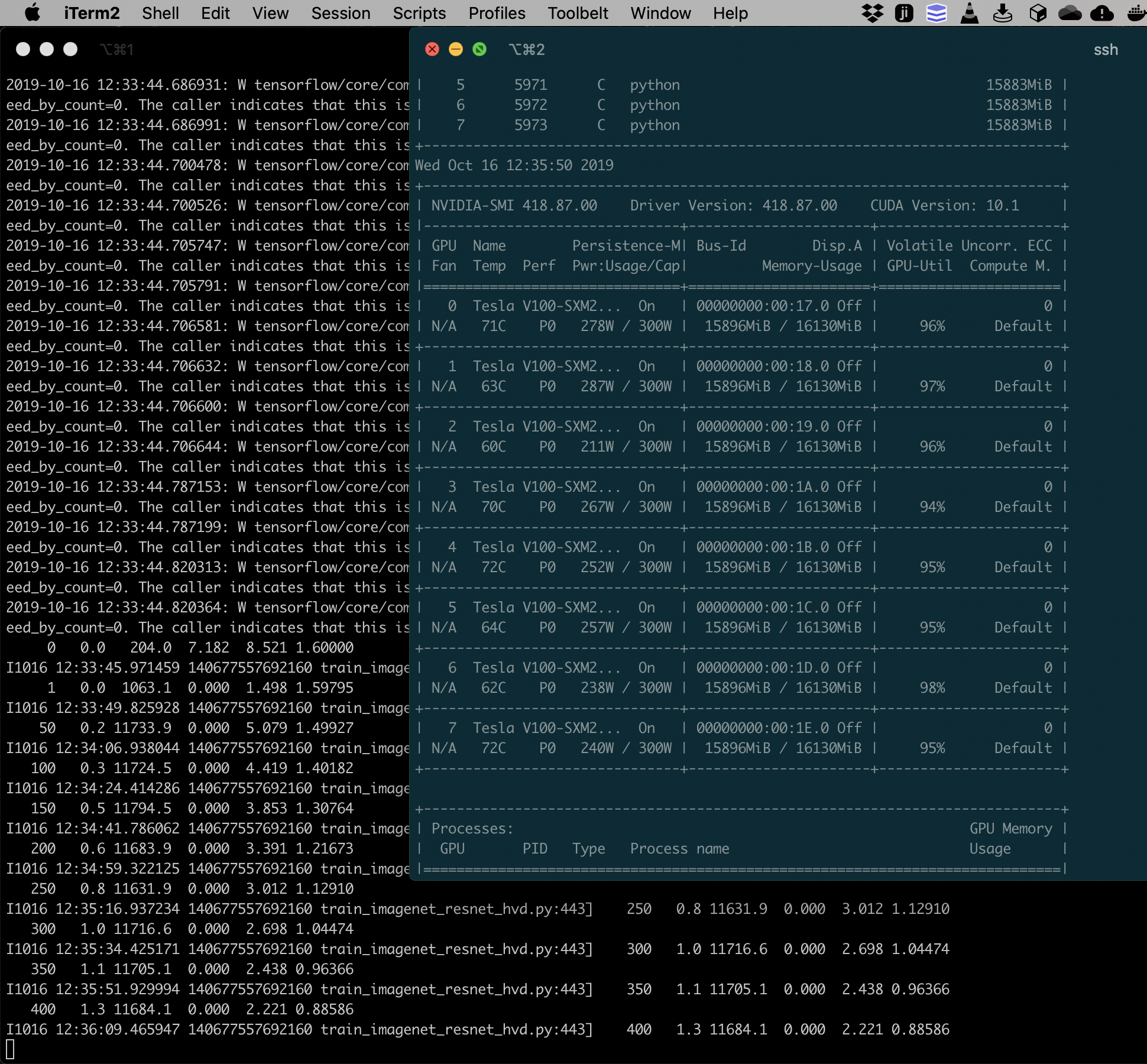 Last weekend I wanted to try scaling some deep learning algorithms to see how fast I would be able to train imagenet. Over the last year training a 50-layer residual network on the imagenet dataset became a challenge, where IBM was able to train it in only 50 minutes( https://www.infoq.com/news/2017/09/ibm-scale-neural-network-gpus/). Sony beat this record a few months ago when they trained this network in only 224 seconds (https://www.infoq.com/news/2018/11/resnet-imagenet/).