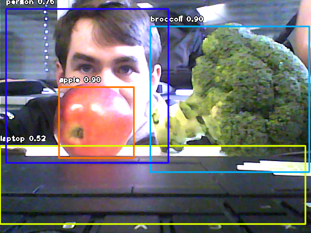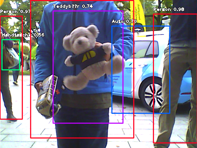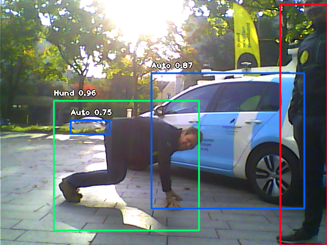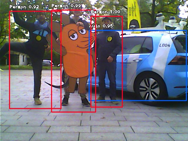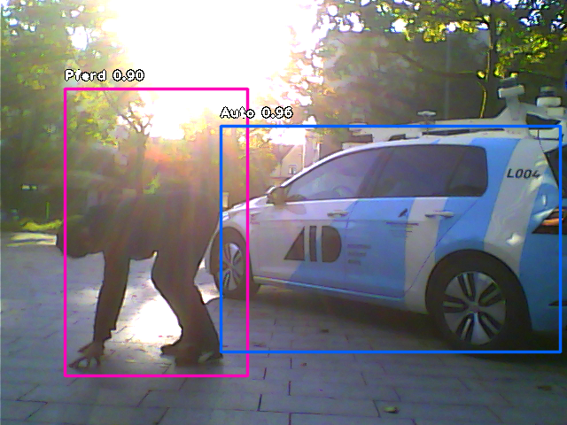Overall kids were quite enthusiastic about the demonstration. It was cool that they themselves were detected, and it’s good for kids to have a bit of interaction by trying out different objects. Things that were difficult to detect during the day were the smaller “out of context” objects, which sparked discussion on whether the car needs to detect broccoli at all… Another cool thing is that we challenged people to behave in an adversarial way: try to fool the neural network into thinking you are a horse or dog. This was actually possible with a bit of effort.